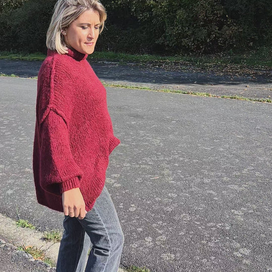 The Romy burgundy sweater is the perfect piece to face the season with elegance and comfort. Its soft, plush knit keeps you warm while remaining pleasant to wear. Its oversized cut and one-size-fits-all design easily adapt to all body types for a feminine, modern, and effortless style. This women's oversized sweater is a winter essential, perfect for those seeking warmth and refinement.